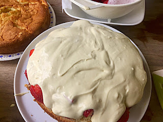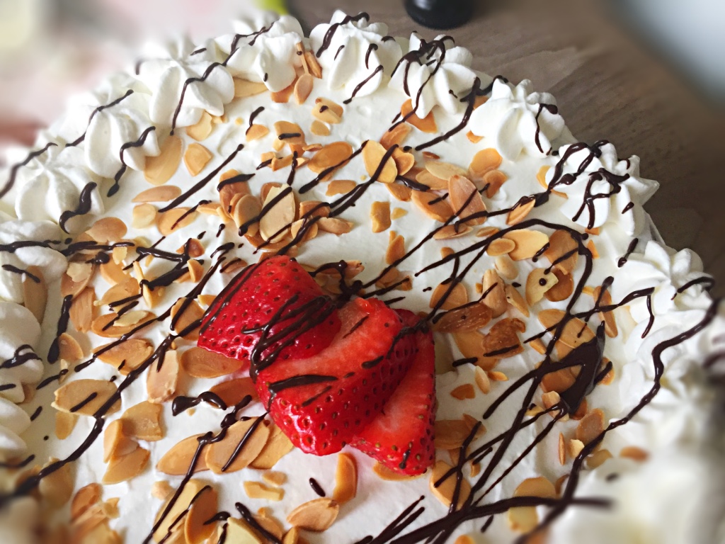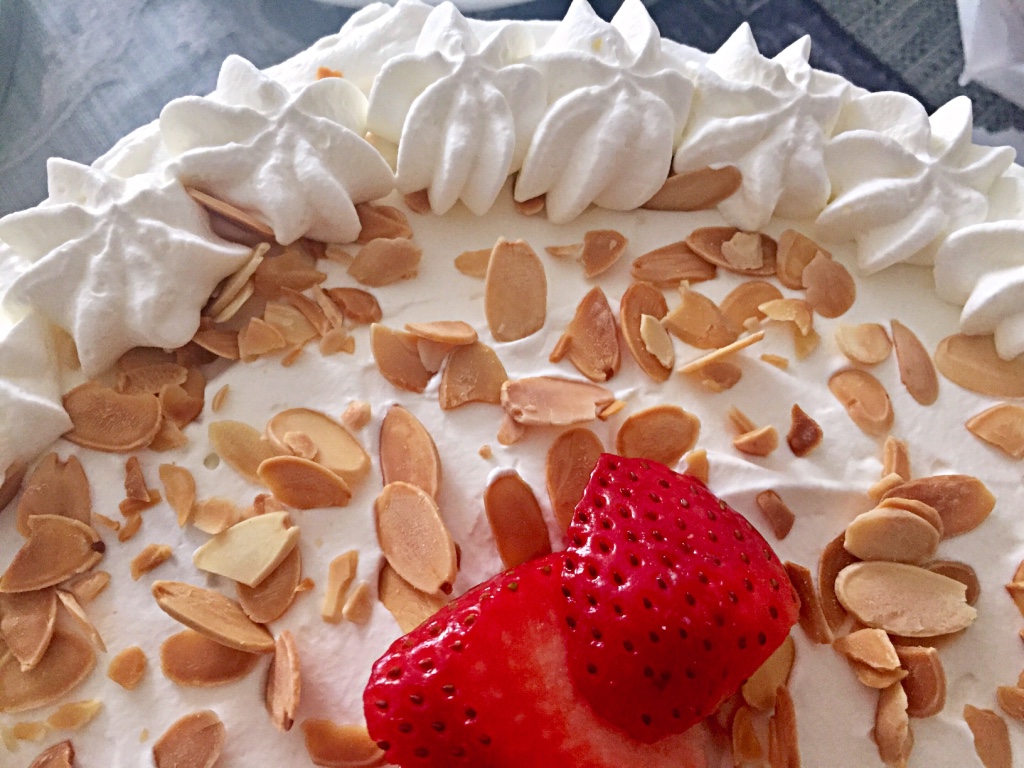 Strawberry Chiffon cake with a light custard pastry cream is still my favourite dessert that I enjoy all year round. I like to decorate with fresh whipped cream, toasted almonds and a Kalua chocolate drizzle. The chiffon and drizzle recipe were given to me by my good friend Enza.