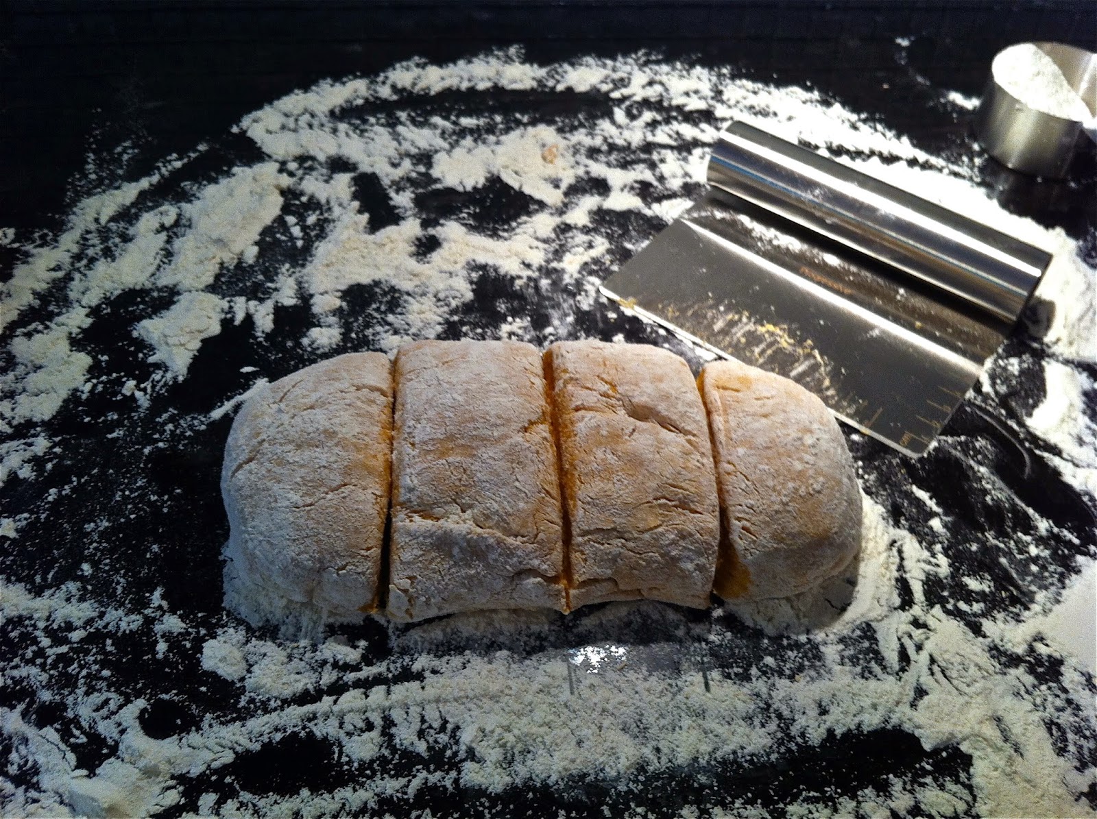 And transfer to a lightly floured tray, as you continue preparing the rest of the dough.