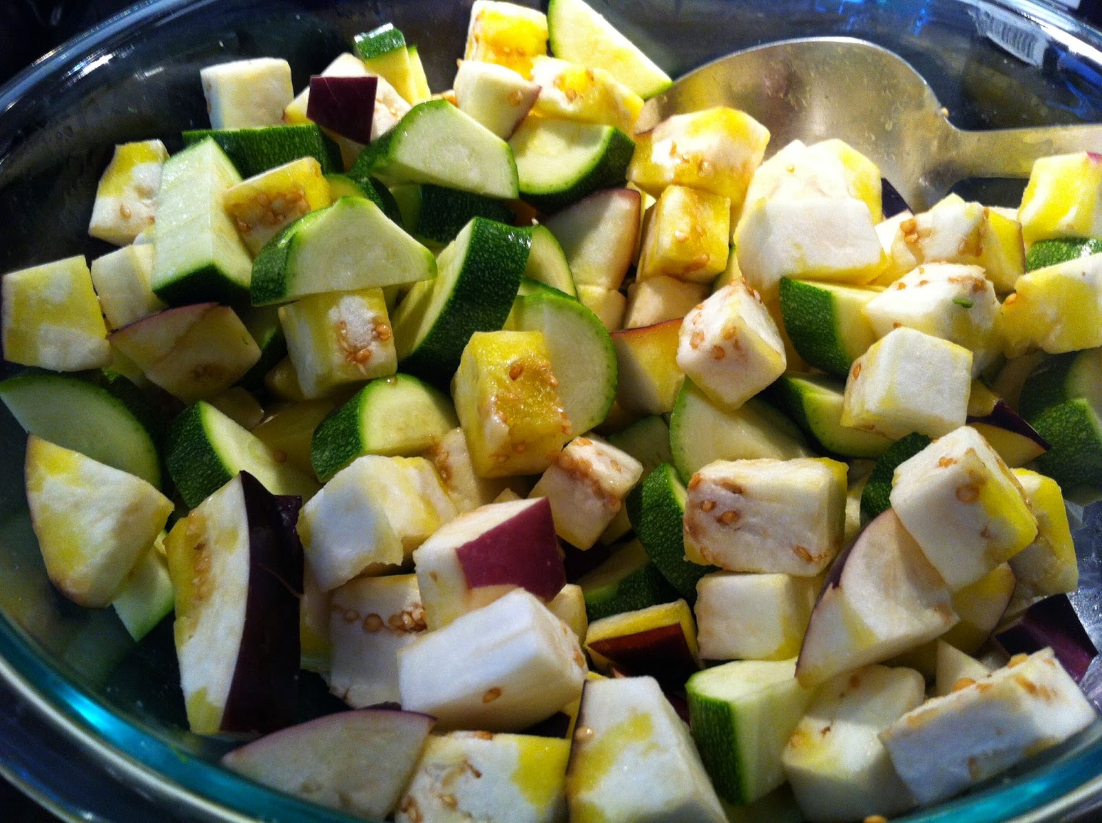 Let cool for about 20 minutes. Seed, remove skins and chop.